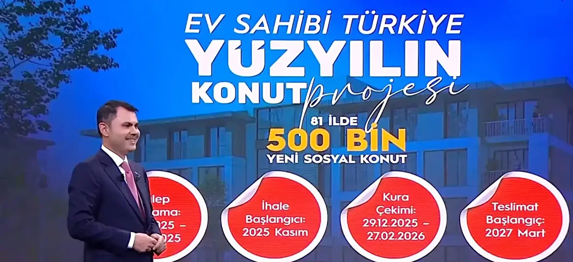Başvuruları 10 Kasım’da açacağız ve 19 Aralık’a kadar başvuralar devam edecek. 29 Aralık’ta konutların kurasını çekeceğiz. Martın başına kadar kura süreci devam edecek. 2027’de konutları teslim etmeye başlayacağız.