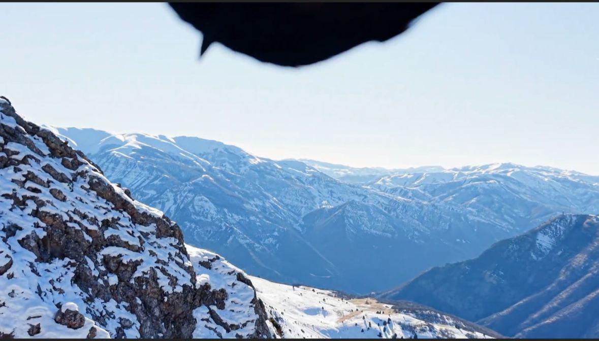 Kartal, dronu kaparak bir süre havada taşıdıktan sonra dağın zirvesine bıraktı. O anlar dron kamerasına yansıdı.