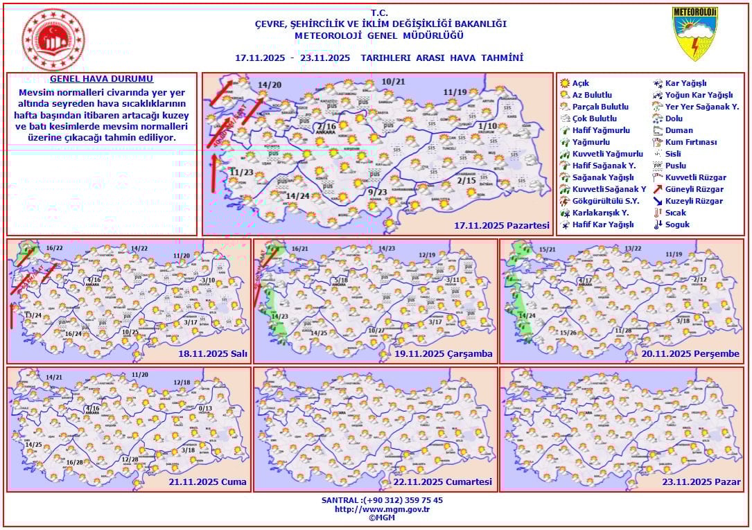 Hava sıcaklıklarının hafta başından itibaren kuzey ve batı kesimlerde 2 ila 4 derece artması, böylece bu bölgelerde mevsim normallerinin üzerine çıkması öngörülüyor.
