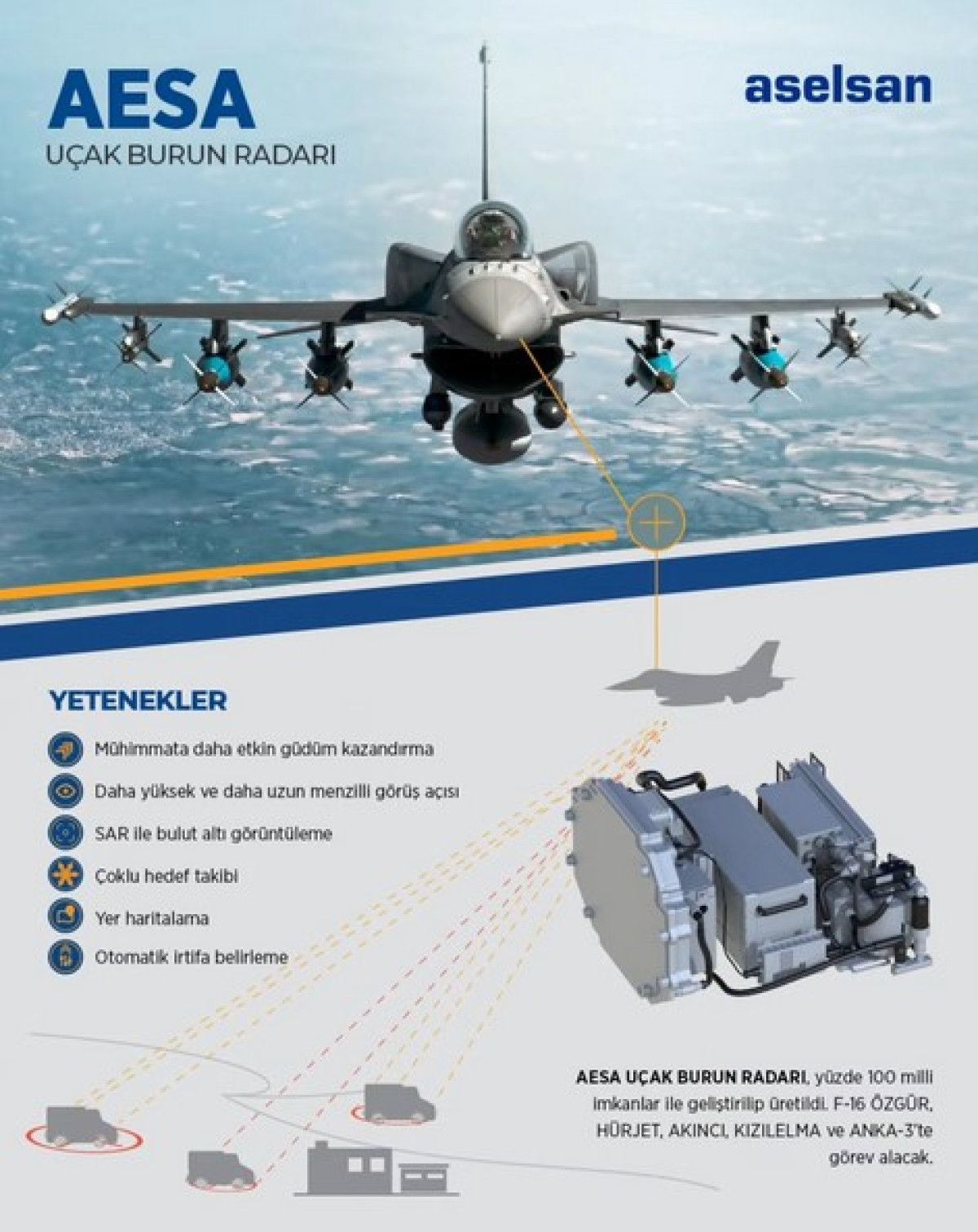 Radar sistemleri, hava, kara ve deniz platformlarının “gözü ve kulağı” olarak tanımlanıyor. AESA (Aktif Elektronik Taramalı Dizi) teknolojisi, radar dünyasında devrim niteliğinde bir gelişme olarak kabul ediliyor.