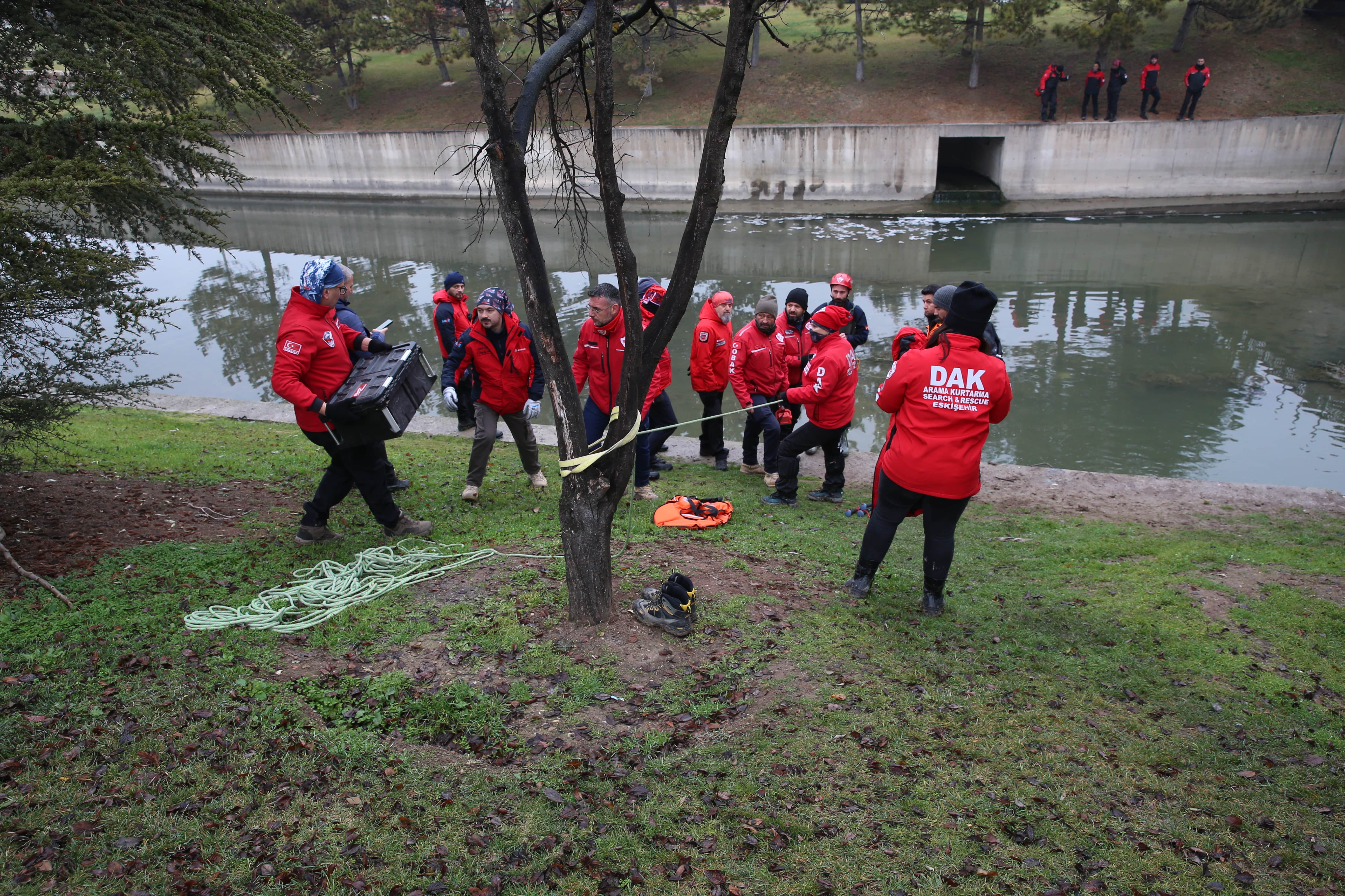Porsuk Çayı’nda yürütülen arama faaliyetleri kapsamında, suyun kapakları kapatılarak debisi düşürüldü ve suyun büyük bir bölümü tahliye edildi. Arama çalışmaları özellikle çayın Gökmeydan Mahallesi ve Kentpark mevkilerinde sürdürülüyor.